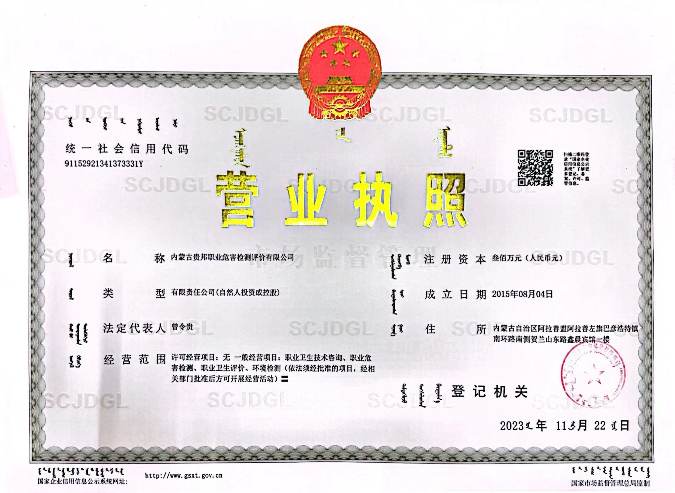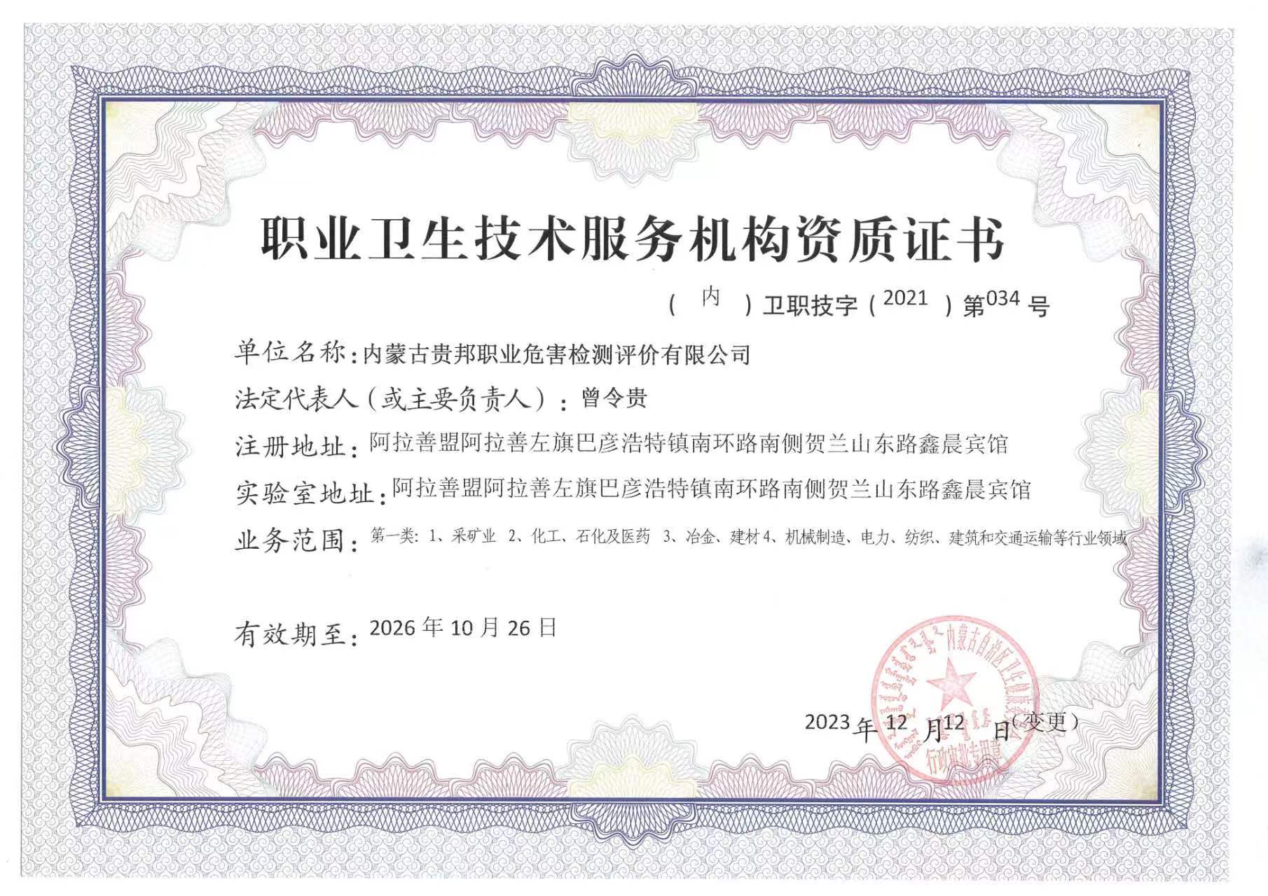 內(nèi)蒙古貴邦職業(yè)危害檢測(cè)評(píng)價(jià)有限公司(m.wsgoi.com)版權(quán)所有 地址:阿拉善盟阿拉善左旗賀蘭山東路加氣站南側(cè)鑫晨賓館一樓 24小時(shí)熱線:18947252199 蒙ICP備:蒙ICP備21006705號(hào)-1 公安備案號(hào):50011802010212